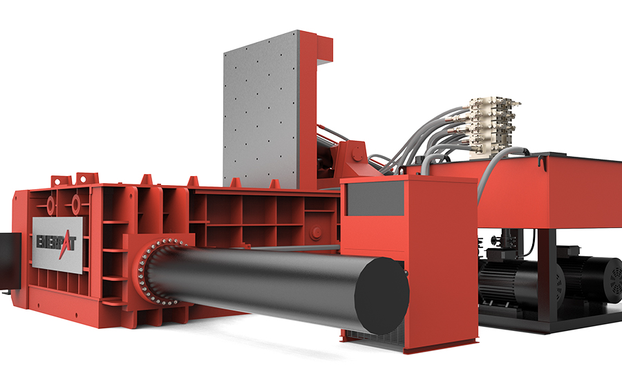 Под приводом гидросистемы металлические отходы спрессовываются в компактные металлические жгуты.